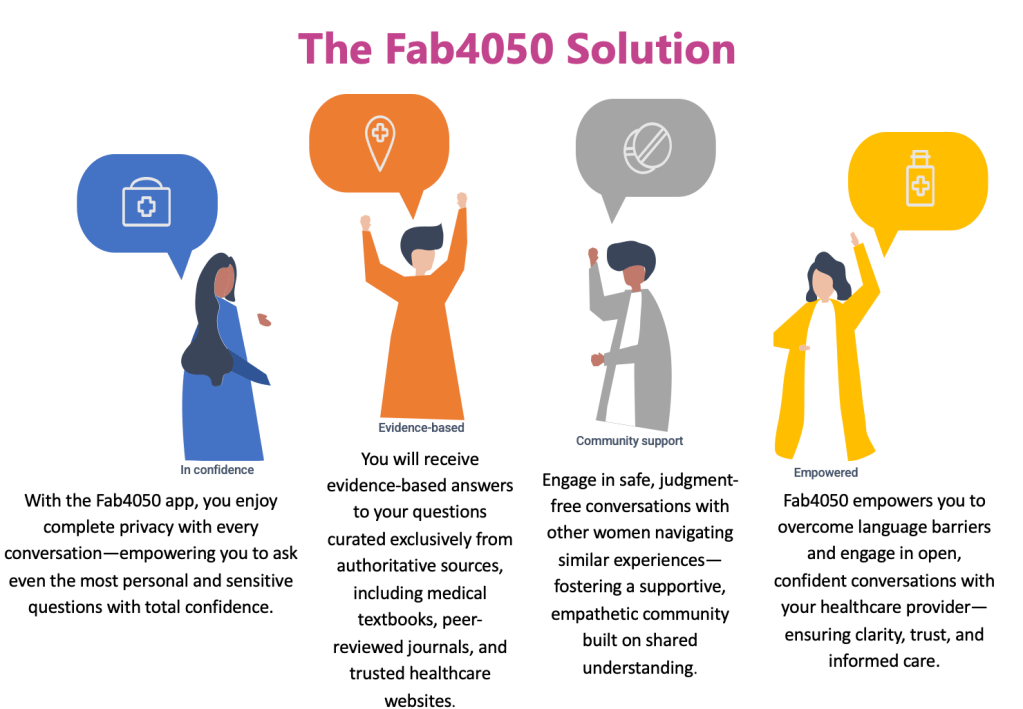 The consequence isn’t just discomfort—it’s a denial of dignity and severe risk to health. Empowering women with safe, intelligent, and culturally sensitive health support isn’t a luxury—it’s a necessity. It’s time to break the silence, dismantle the stigma, and deliver equitable health access to every woman, no matter where she lives or what she’s been told to endure. Fab4050 is built to lead that change utilising proprietary AI to deliver accessible menopause guidance in simple English, with ongoing development of a multi-language, agentic architecture for culturally sensitive, personalised health support especially for women for whom English is not the main language.