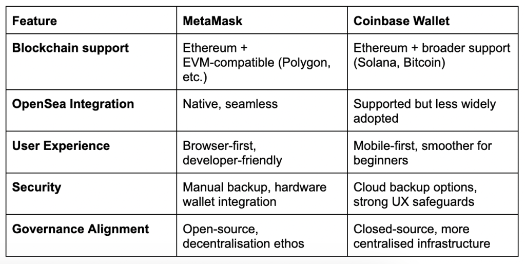As The Fab4050 NFT is minted on Polygon, and uses OpenSea’s creator tools, MetaMask offers better compatibility, control, and alignment with Fab4050’s governance-first model. It’s also more widely used in the NFT creator community, which helps with onboarding and support.