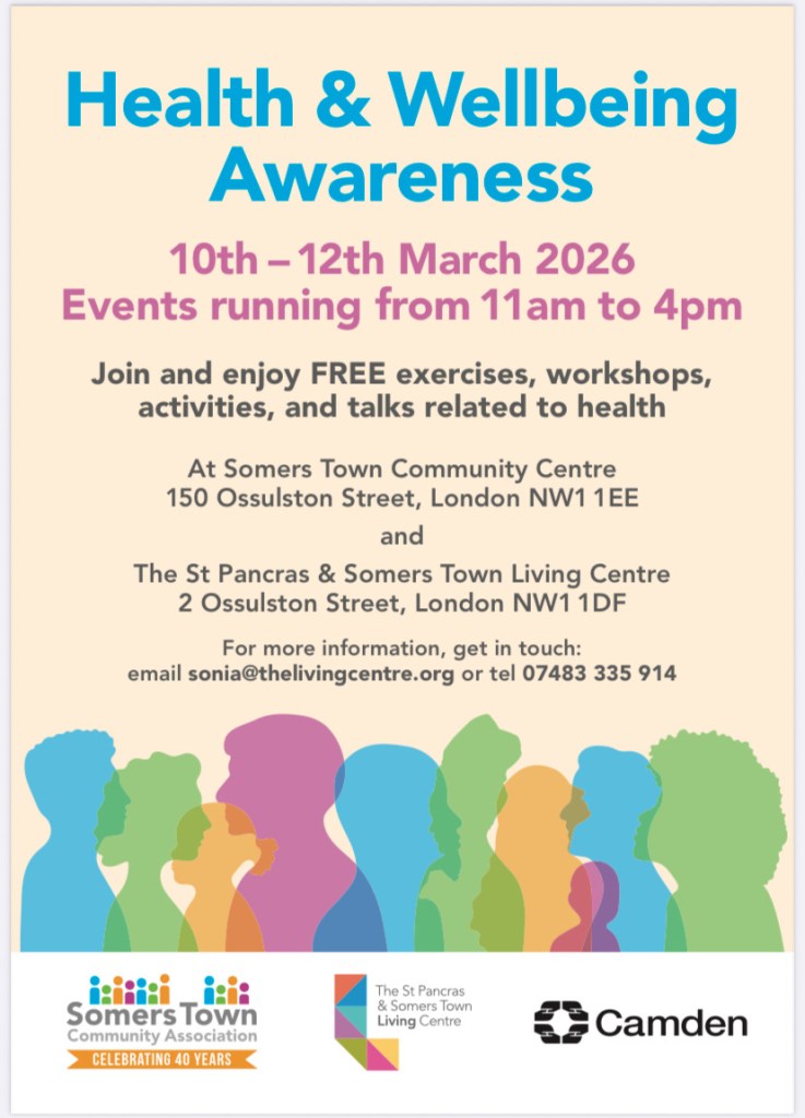10th March, 10.00am – 3.00pm at St Pancras and Somers Town Living Centre, 2 Ossulston Street, London